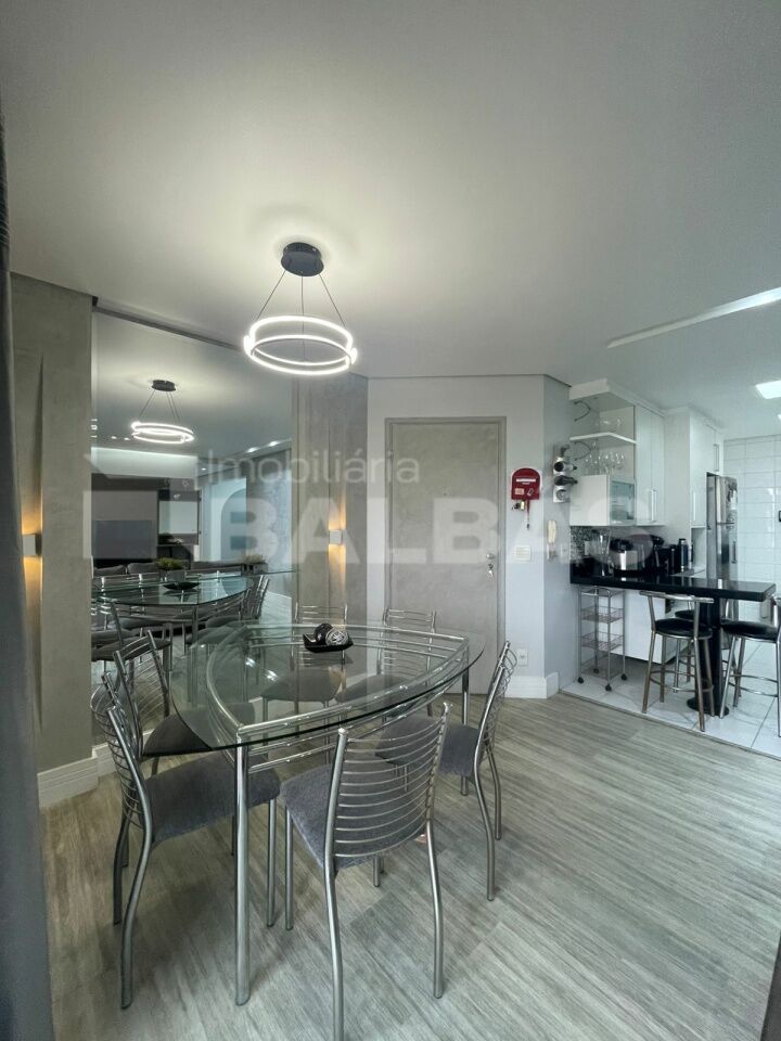 3 dormitórios (sendo 1 suíte) , 2 banheiros, sala ampla para 2 ambientes, cozinha com conceito aberto, integrada à sala e com vista para a varanda